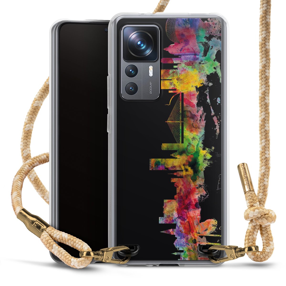 The flexible case is made from a highquality TPU material (thermoplastic Polyurethan). Thanks to its longlasting and break resistant characterisitcs, the case is flexible yet consistent in form and has a great grip and feel. The textile strap made from Polyester gives a chic yet casual accent allowing you to carry your phone like a bag or necklace - a practical gadget perfect for your next adventure. The textile strap is about 1.70 meters long and the length can easily be adjusted through the knots. Our Carry Case is available in Colourful, Mint-Camouflage, Very-Berry, Sahara-Sand and Sparkling-Neon. The ends of the textile strap are covered with metallic end caps to protect them against fraying.