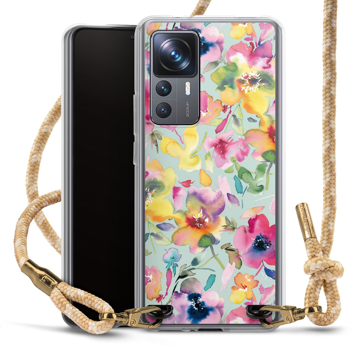 The flexible case is made from a highquality TPU material (thermoplastic Polyurethan). Thanks to its longlasting and break resistant characterisitcs, the case is flexible yet consistent in form and has a great grip and feel. The textile strap made from Polyester gives a chic yet casual accent allowing you to carry your phone like a bag or necklace - a practical gadget perfect for your next adventure. The textile strap is about 1.70 meters long and the length can easily be adjusted through the knots. Our Carry Case is available in Colourful, Mint-Camouflage, Very-Berry, Sahara-Sand and Sparkling-Neon. The ends of the textile strap are covered with metallic end caps to protect them against fraying.