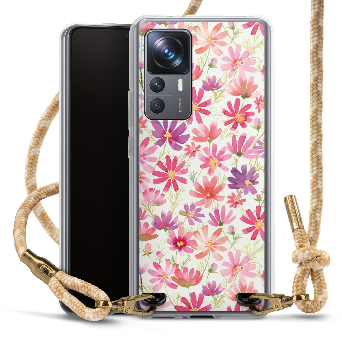 The flexible case is made from a highquality TPU material (thermoplastic Polyurethan). Thanks to its longlasting and break resistant characterisitcs, the case is flexible yet consistent in form and has a great grip and feel. The textile strap made from Polyester gives a chic yet casual accent allowing you to carry your phone like a bag or necklace - a practical gadget perfect for your next adventure. The textile strap is about 1.70 meters long and the length can easily be adjusted through the knots. Our Carry Case is available in Colourful, Mint-Camouflage, Very-Berry, Sahara-Sand and Sparkling-Neon. The ends of the textile strap are covered with metallic end caps to protect them against fraying.