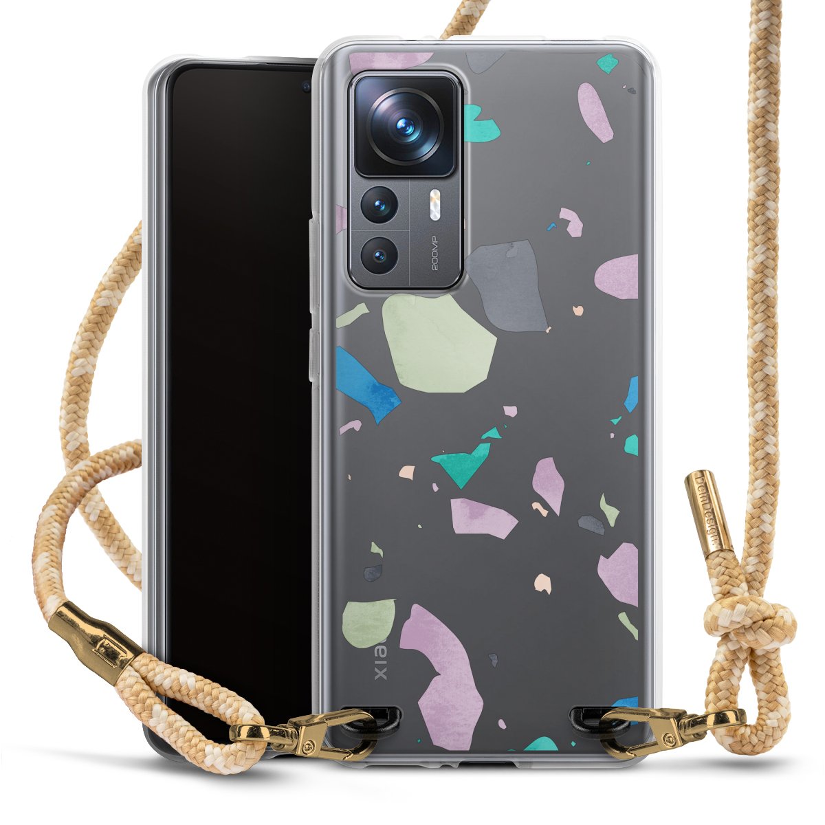 The flexible case is made from a highquality TPU material (thermoplastic Polyurethan). Thanks to its longlasting and break resistant characterisitcs, the case is flexible yet consistent in form and has a great grip and feel. The textile strap made from Polyester gives a chic yet casual accent allowing you to carry your phone like a bag or necklace - a practical gadget perfect for your next adventure. The textile strap is about 1.70 meters long and the length can easily be adjusted through the knots. Our Carry Case is available in Colourful, Mint-Camouflage, Very-Berry, Sahara-Sand and Sparkling-Neon. The ends of the textile strap are covered with metallic end caps to protect them against fraying.