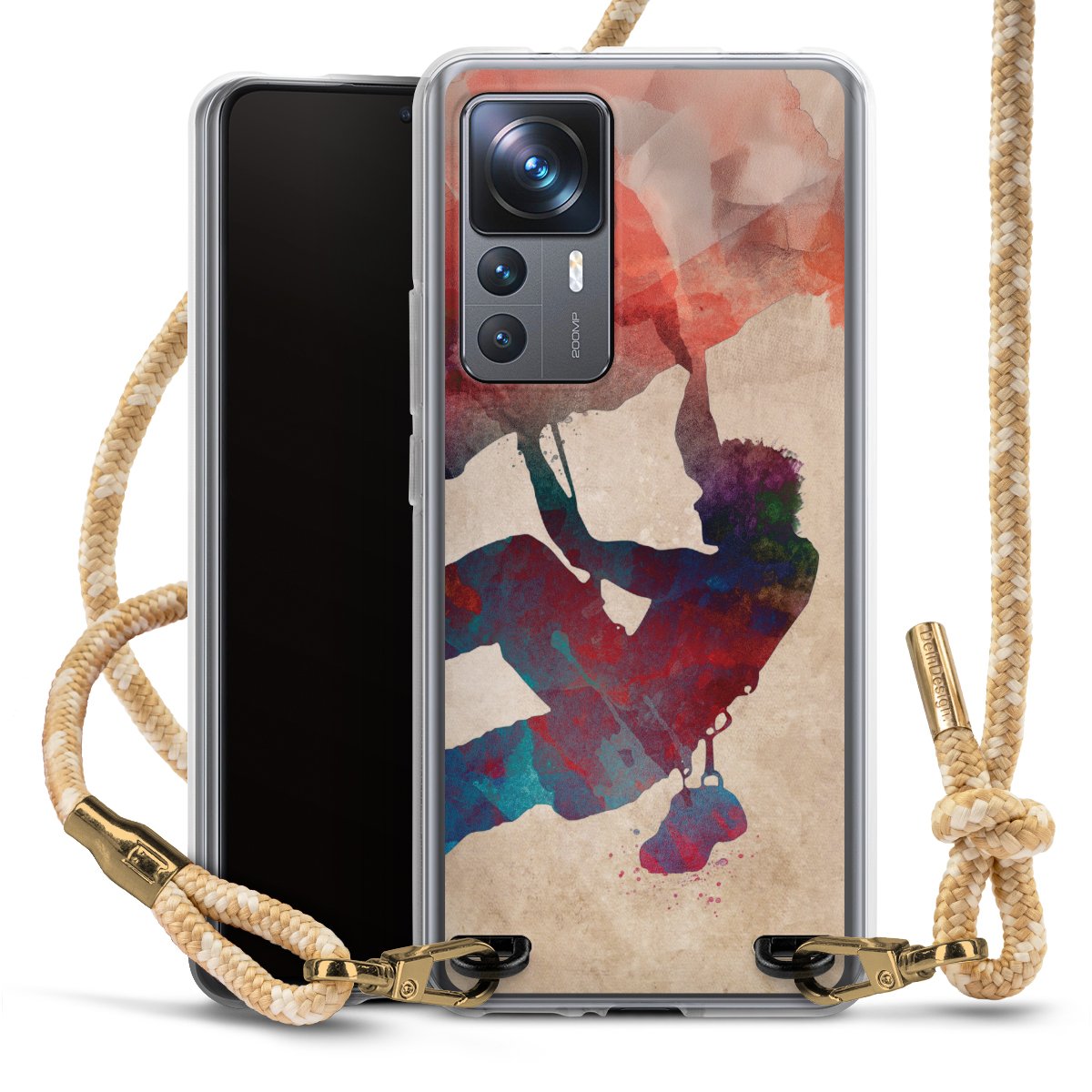 The flexible case is made from a highquality TPU material (thermoplastic Polyurethan). Thanks to its longlasting and break resistant characterisitcs, the case is flexible yet consistent in form and has a great grip and feel. The textile strap made from Polyester gives a chic yet casual accent allowing you to carry your phone like a bag or necklace - a practical gadget perfect for your next adventure. The textile strap is about 1.70 meters long and the length can easily be adjusted through the knots. Our Carry Case is available in Colourful, Mint-Camouflage, Very-Berry, Sahara-Sand and Sparkling-Neon. The ends of the textile strap are covered with metallic end caps to protect them against fraying.