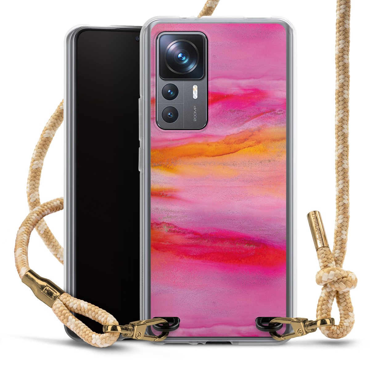 The flexible case is made from a highquality TPU material (thermoplastic Polyurethan). Thanks to its longlasting and break resistant characterisitcs, the case is flexible yet consistent in form and has a great grip and feel. The textile strap made from Polyester gives a chic yet casual accent allowing you to carry your phone like a bag or necklace - a practical gadget perfect for your next adventure. The textile strap is about 1.70 meters long and the length can easily be adjusted through the knots. Our Carry Case is available in Colourful, Mint-Camouflage, Very-Berry, Sahara-Sand and Sparkling-Neon. The ends of the textile strap are covered with metallic end caps to protect them against fraying.