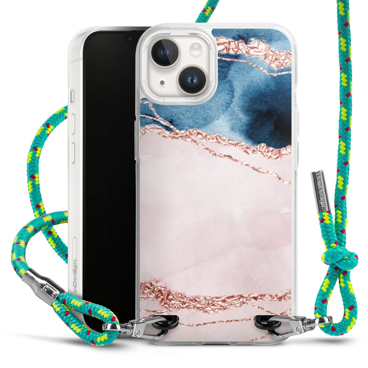 The flexible case is made from a highquality TPU material (thermoplastic Polyurethan). Thanks to its longlasting and break resistant characterisitcs, the case is flexible yet consistent in form and has a great grip and feel. The textile strap made from Polyester gives a chic yet casual accent allowing you to carry your phone like a bag or necklace - a practical gadget perfect for your next adventure. The textile strap is about 1.70 meters long and the length can easily be adjusted through the knots. Our Carry Case is available in Colourful, Mint-Camouflage, Very-Berry, Sahara-Sand and Sparkling-Neon. The ends of the textile strap are covered with metallic end caps to protect them against fraying.