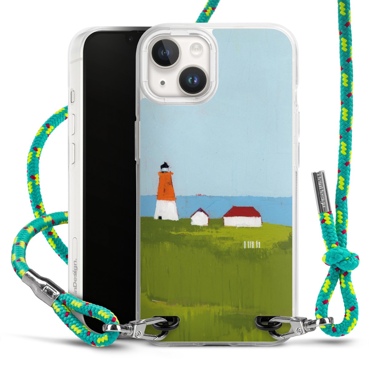 The flexible case is made from a highquality TPU material (thermoplastic Polyurethan). Thanks to its longlasting and break resistant characterisitcs, the case is flexible yet consistent in form and has a great grip and feel. The textile strap made from Polyester gives a chic yet casual accent allowing you to carry your phone like a bag or necklace - a practical gadget perfect for your next adventure. The textile strap is about 1.70 meters long and the length can easily be adjusted through the knots. Our Carry Case is available in Colourful, Mint-Camouflage, Very-Berry, Sahara-Sand and Sparkling-Neon. The ends of the textile strap are covered with metallic end caps to protect them against fraying.