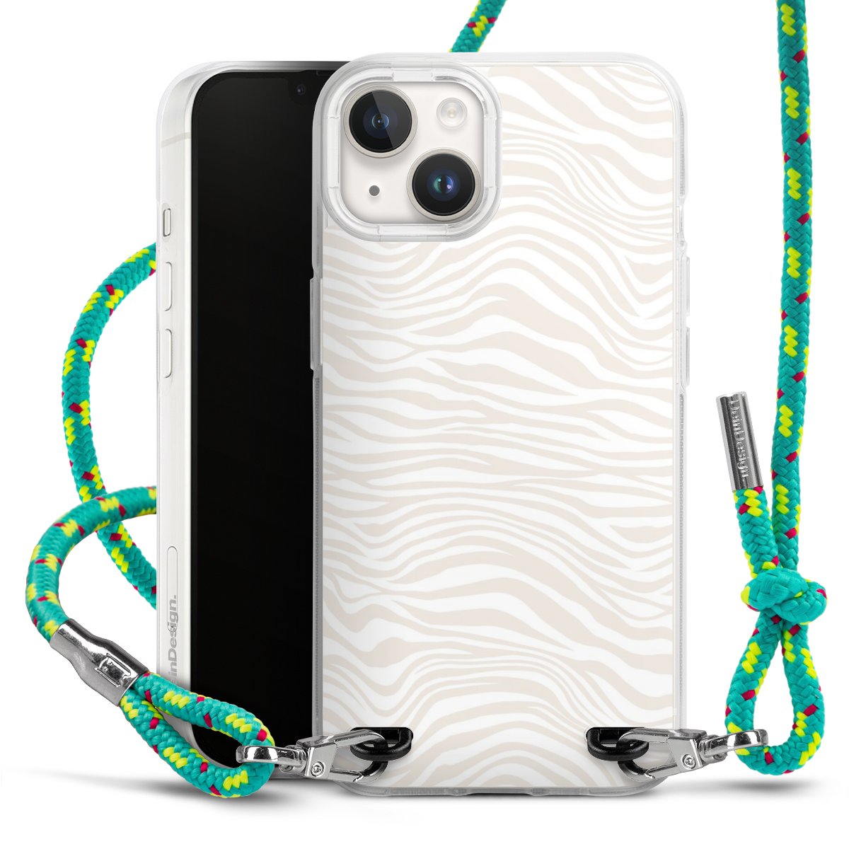 The flexible case is made from a highquality TPU material (thermoplastic Polyurethan). Thanks to its longlasting and break resistant characterisitcs, the case is flexible yet consistent in form and has a great grip and feel. The textile strap made from Polyester gives a chic yet casual accent allowing you to carry your phone like a bag or necklace - a practical gadget perfect for your next adventure. The textile strap is about 1.70 meters long and the length can easily be adjusted through the knots. Our Carry Case is available in Colourful, Mint-Camouflage, Very-Berry, Sahara-Sand and Sparkling-Neon. The ends of the textile strap are covered with metallic end caps to protect them against fraying.