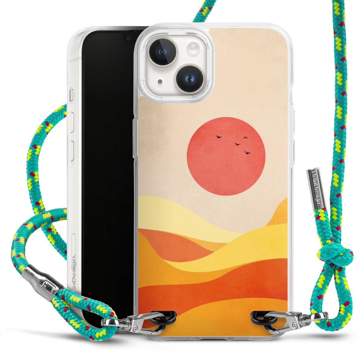 The flexible case is made from a highquality TPU material (thermoplastic Polyurethan). Thanks to its longlasting and break resistant characterisitcs, the case is flexible yet consistent in form and has a great grip and feel. The textile strap made from Polyester gives a chic yet casual accent allowing you to carry your phone like a bag or necklace - a practical gadget perfect for your next adventure. The textile strap is about 1.70 meters long and the length can easily be adjusted through the knots. Our Carry Case is available in Colourful, Mint-Camouflage, Very-Berry, Sahara-Sand and Sparkling-Neon. The ends of the textile strap are covered with metallic end caps to protect them against fraying.