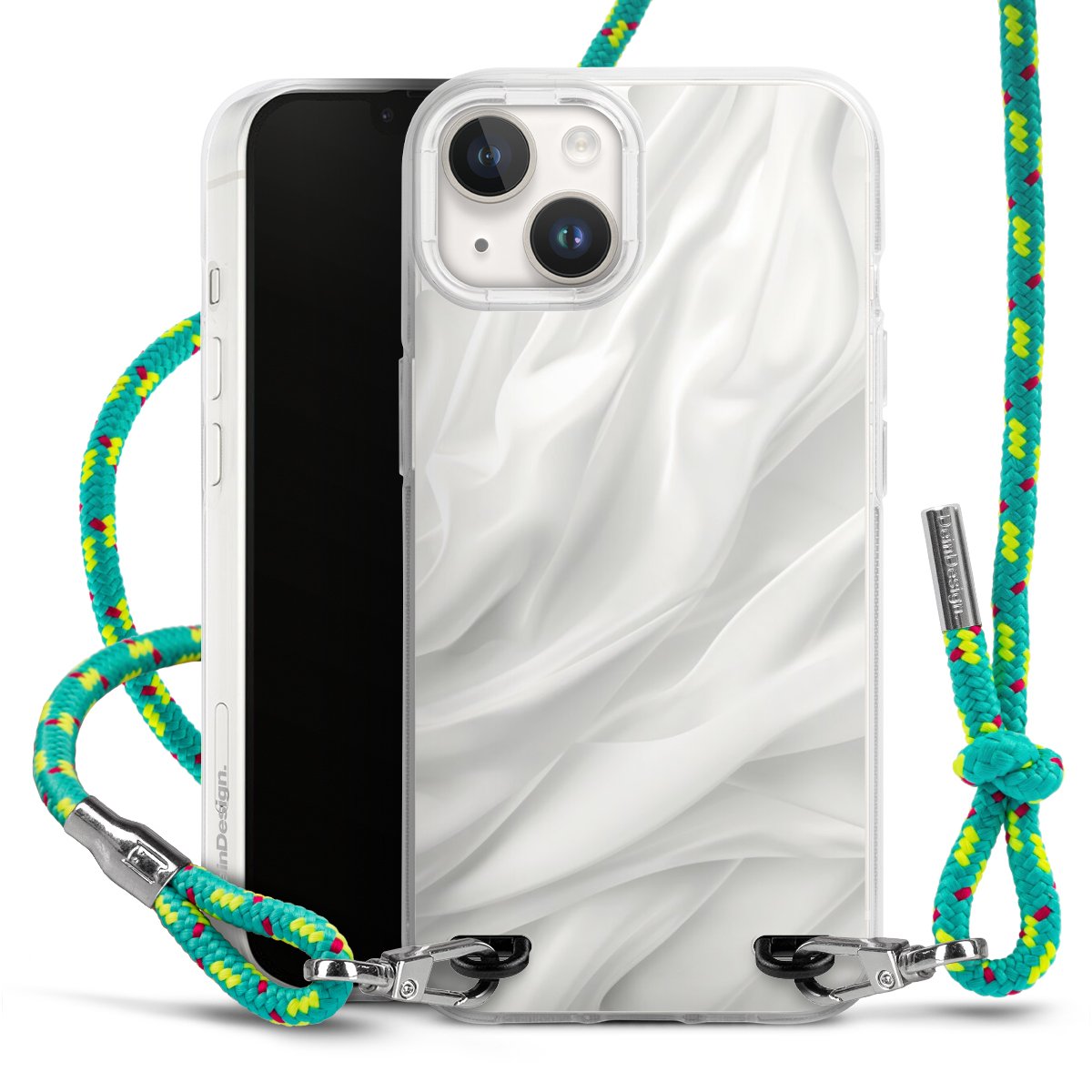 The flexible case is made from a highquality TPU material (thermoplastic Polyurethan). Thanks to its longlasting and break resistant characterisitcs, the case is flexible yet consistent in form and has a great grip and feel. The textile strap made from Polyester gives a chic yet casual accent allowing you to carry your phone like a bag or necklace - a practical gadget perfect for your next adventure. The textile strap is about 1.70 meters long and the length can easily be adjusted through the knots. Our Carry Case is available in Colourful, Mint-Camouflage, Very-Berry, Sahara-Sand and Sparkling-Neon. The ends of the textile strap are covered with metallic end caps to protect them against fraying.