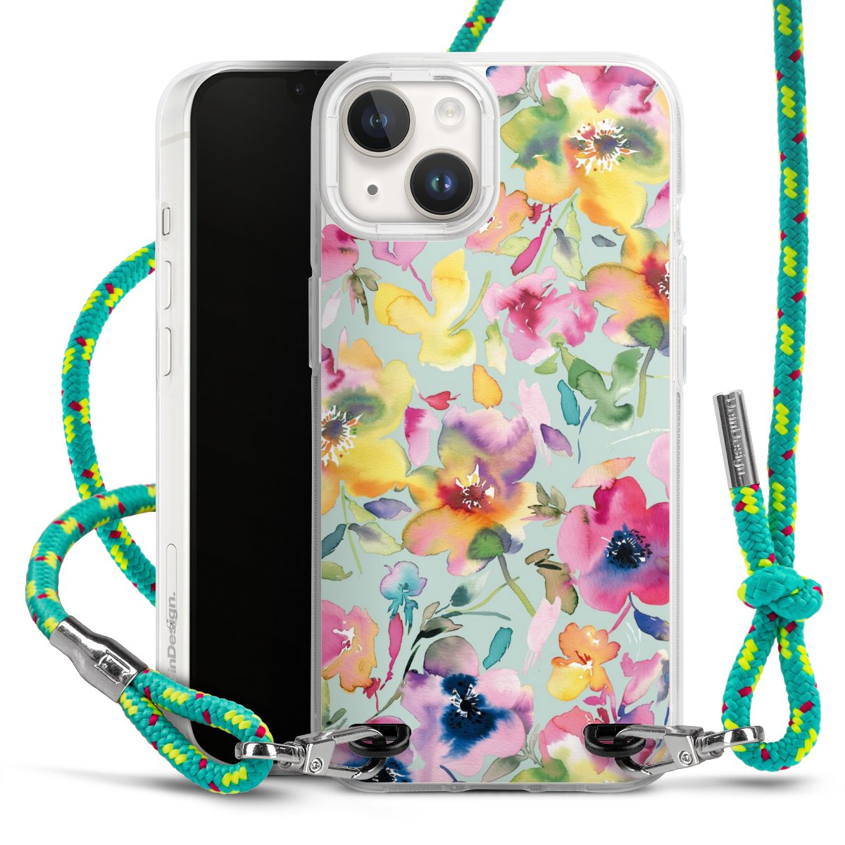 The flexible case is made from a highquality TPU material (thermoplastic Polyurethan). Thanks to its longlasting and break resistant characterisitcs, the case is flexible yet consistent in form and has a great grip and feel. The textile strap made from Polyester gives a chic yet casual accent allowing you to carry your phone like a bag or necklace - a practical gadget perfect for your next adventure. The textile strap is about 1.70 meters long and the length can easily be adjusted through the knots. Our Carry Case is available in Colourful, Mint-Camouflage, Very-Berry, Sahara-Sand and Sparkling-Neon. The ends of the textile strap are covered with metallic end caps to protect them against fraying.