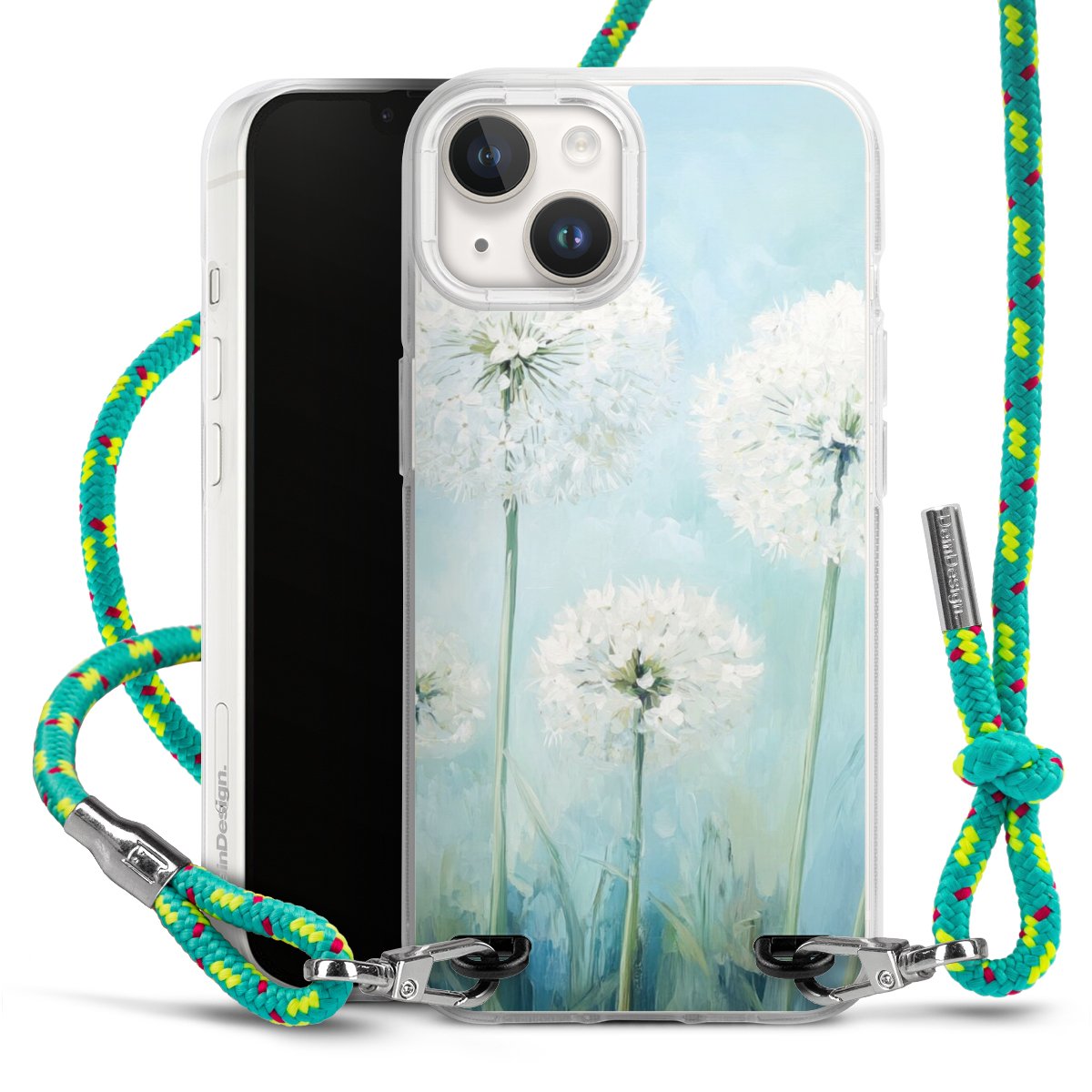 The flexible case is made from a highquality TPU material (thermoplastic Polyurethan). Thanks to its longlasting and break resistant characterisitcs, the case is flexible yet consistent in form and has a great grip and feel. The textile strap made from Polyester gives a chic yet casual accent allowing you to carry your phone like a bag or necklace - a practical gadget perfect for your next adventure. The textile strap is about 1.70 meters long and the length can easily be adjusted through the knots. Our Carry Case is available in Colourful, Mint-Camouflage, Very-Berry, Sahara-Sand and Sparkling-Neon. The ends of the textile strap are covered with metallic end caps to protect them against fraying.