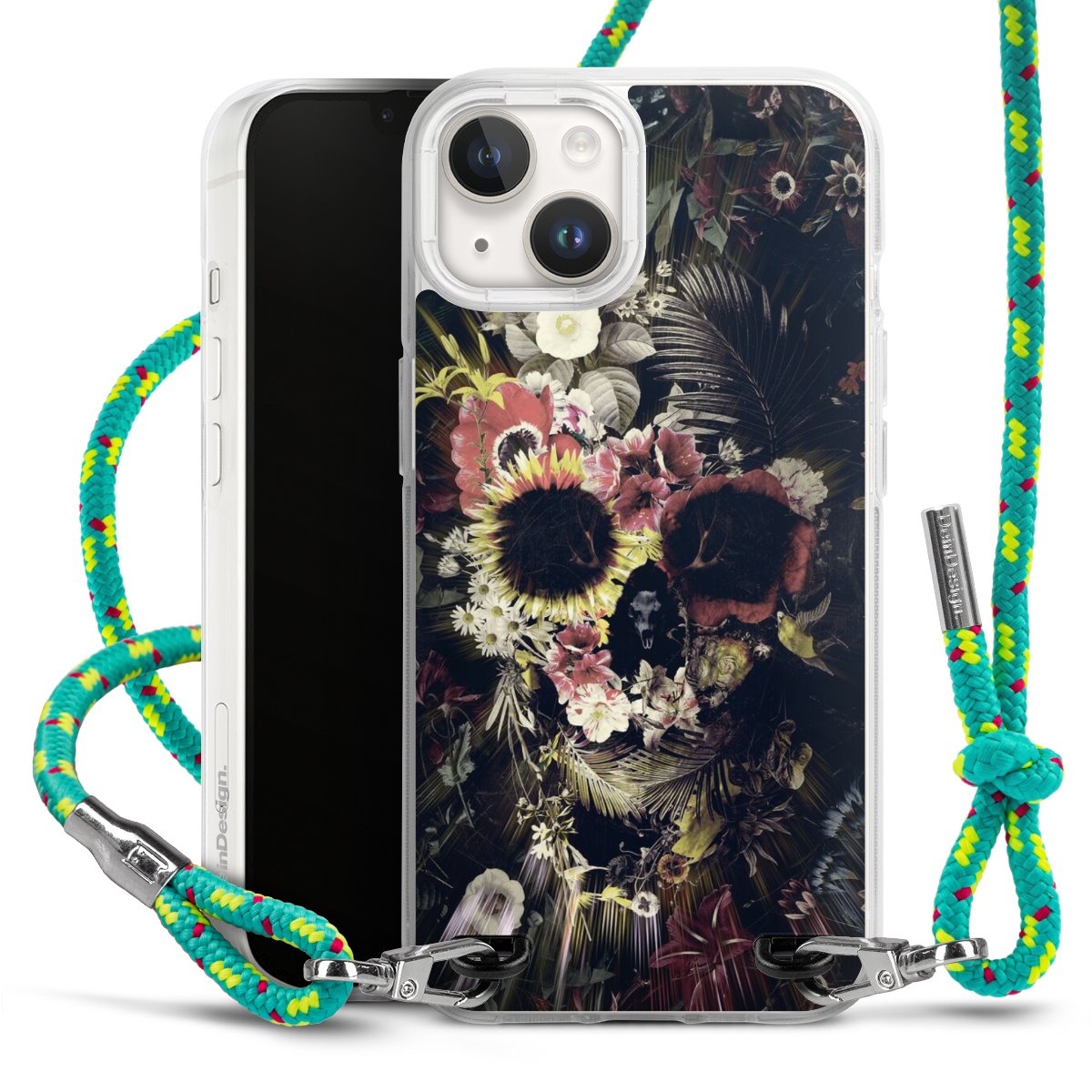 The flexible case is made from a highquality TPU material (thermoplastic Polyurethan). Thanks to its longlasting and break resistant characterisitcs, the case is flexible yet consistent in form and has a great grip and feel. The textile strap made from Polyester gives a chic yet casual accent allowing you to carry your phone like a bag or necklace - a practical gadget perfect for your next adventure. The textile strap is about 1.70 meters long and the length can easily be adjusted through the knots. Our Carry Case is available in Colourful, Mint-Camouflage, Very-Berry, Sahara-Sand and Sparkling-Neon. The ends of the textile strap are covered with metallic end caps to protect them against fraying.