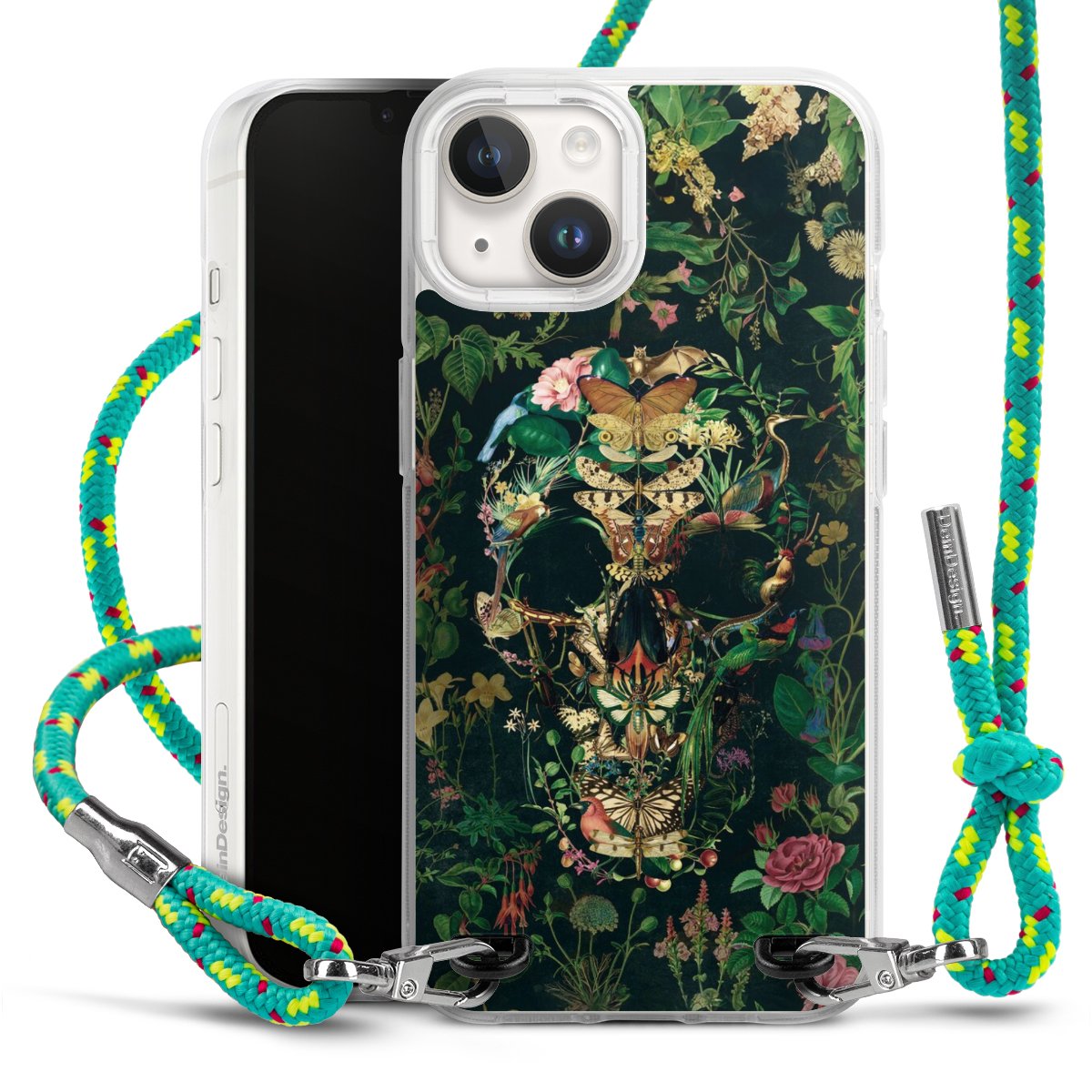 The flexible case is made from a highquality TPU material (thermoplastic Polyurethan). Thanks to its longlasting and break resistant characterisitcs, the case is flexible yet consistent in form and has a great grip and feel. The textile strap made from Polyester gives a chic yet casual accent allowing you to carry your phone like a bag or necklace - a practical gadget perfect for your next adventure. The textile strap is about 1.70 meters long and the length can easily be adjusted through the knots. Our Carry Case is available in Colourful, Mint-Camouflage, Very-Berry, Sahara-Sand and Sparkling-Neon. The ends of the textile strap are covered with metallic end caps to protect them against fraying.