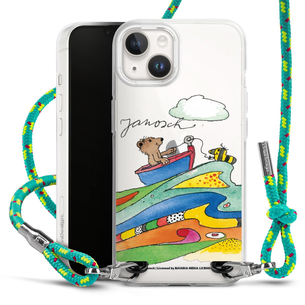The flexible case is made from a highquality TPU material (thermoplastic Polyurethan). Thanks to its longlasting and break resistant characterisitcs, the case is flexible yet consistent in form and has a great grip and feel. The textile strap made from Polyester gives a chic yet casual accent allowing you to carry your phone like a bag or necklace - a practical gadget perfect for your next adventure. The textile strap is about 1.70 meters long and the length can easily be adjusted through the knots. Our Carry Case is available in Colourful, Mint-Camouflage, Very-Berry, Sahara-Sand and Sparkling-Neon. The ends of the textile strap are covered with metallic end caps to protect them against fraying.