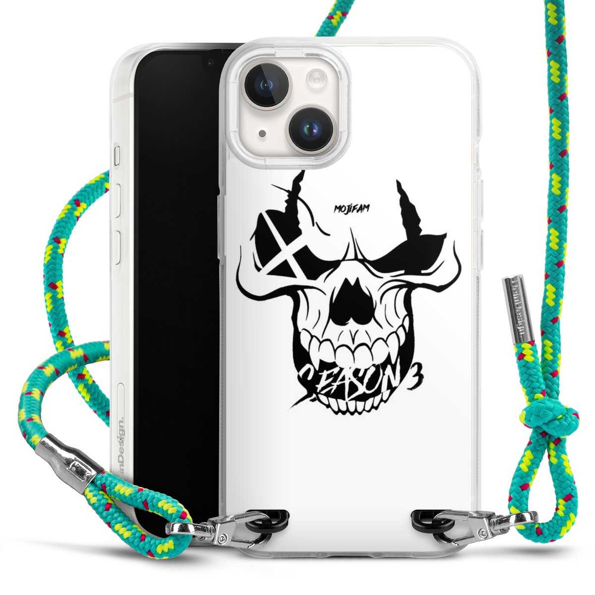 The flexible case is made from a highquality TPU material (thermoplastic Polyurethan). Thanks to its longlasting and break resistant characterisitcs, the case is flexible yet consistent in form and has a great grip and feel. The textile strap made from Polyester gives a chic yet casual accent allowing you to carry your phone like a bag or necklace - a practical gadget perfect for your next adventure. The textile strap is about 1.70 meters long and the length can easily be adjusted through the knots. Our Carry Case is available in Colourful, Mint-Camouflage, Very-Berry, Sahara-Sand and Sparkling-Neon. The ends of the textile strap are covered with metallic end caps to protect them against fraying.