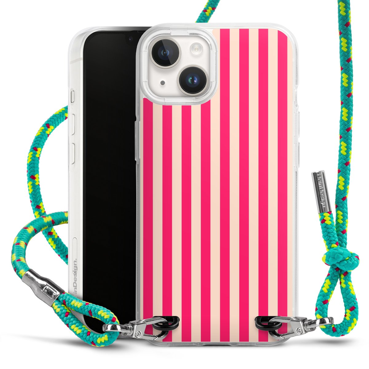 The flexible case is made from a highquality TPU material (thermoplastic Polyurethan). Thanks to its longlasting and break resistant characterisitcs, the case is flexible yet consistent in form and has a great grip and feel. The textile strap made from Polyester gives a chic yet casual accent allowing you to carry your phone like a bag or necklace - a practical gadget perfect for your next adventure. The textile strap is about 1.70 meters long and the length can easily be adjusted through the knots. Our Carry Case is available in Colourful, Mint-Camouflage, Very-Berry, Sahara-Sand and Sparkling-Neon. The ends of the textile strap are covered with metallic end caps to protect them against fraying.