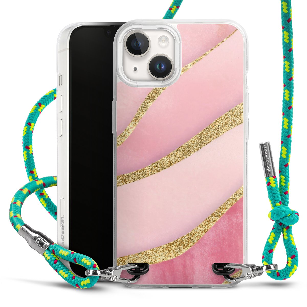 The flexible case is made from a highquality TPU material (thermoplastic Polyurethan). Thanks to its longlasting and break resistant characterisitcs, the case is flexible yet consistent in form and has a great grip and feel. The textile strap made from Polyester gives a chic yet casual accent allowing you to carry your phone like a bag or necklace - a practical gadget perfect for your next adventure. The textile strap is about 1.70 meters long and the length can easily be adjusted through the knots. Our Carry Case is available in Colourful, Mint-Camouflage, Very-Berry, Sahara-Sand and Sparkling-Neon. The ends of the textile strap are covered with metallic end caps to protect them against fraying.
