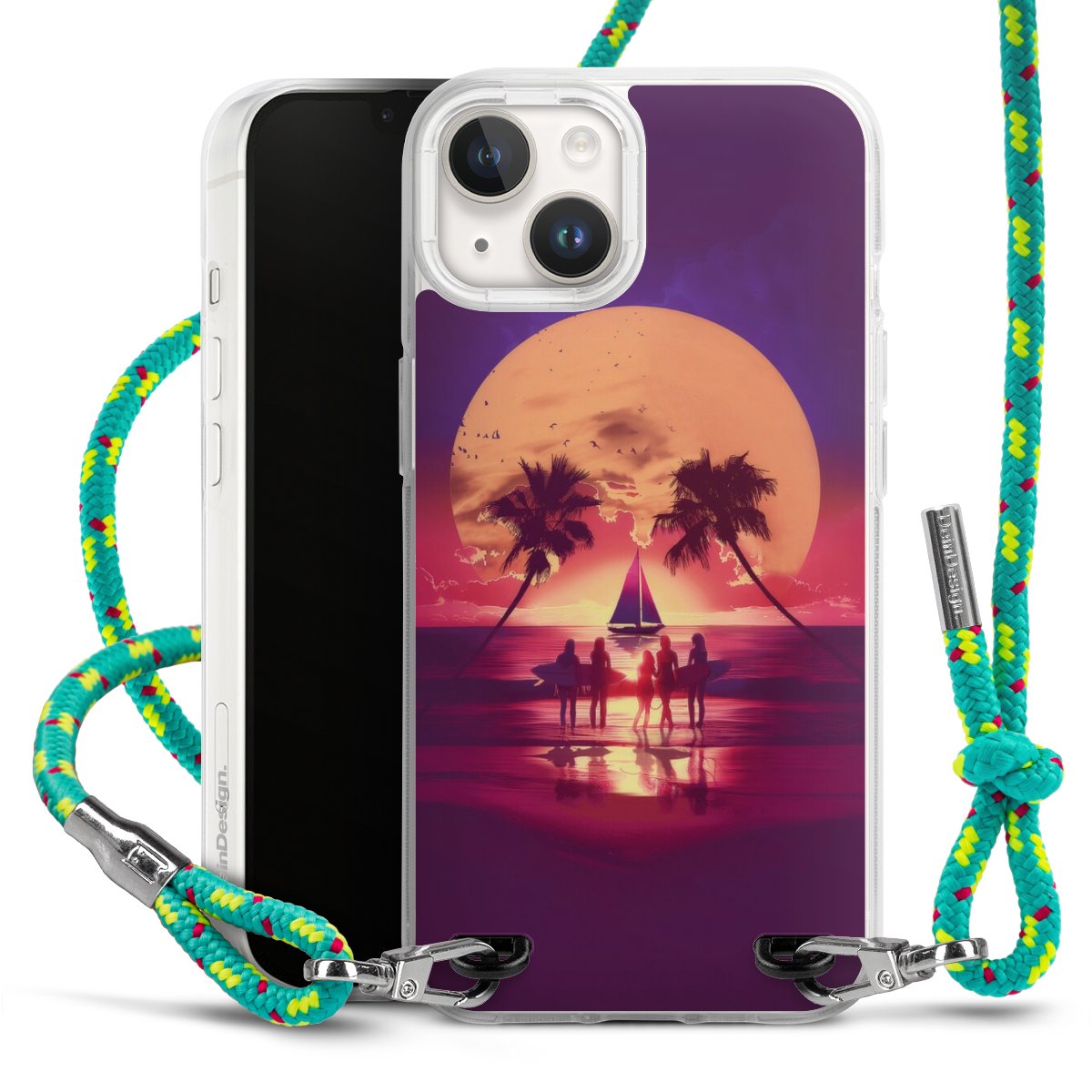The flexible case is made from a highquality TPU material (thermoplastic Polyurethan). Thanks to its longlasting and break resistant characterisitcs, the case is flexible yet consistent in form and has a great grip and feel. The textile strap made from Polyester gives a chic yet casual accent allowing you to carry your phone like a bag or necklace - a practical gadget perfect for your next adventure. The textile strap is about 1.70 meters long and the length can easily be adjusted through the knots. Our Carry Case is available in Colourful, Mint-Camouflage, Very-Berry, Sahara-Sand and Sparkling-Neon. The ends of the textile strap are covered with metallic end caps to protect them against fraying.