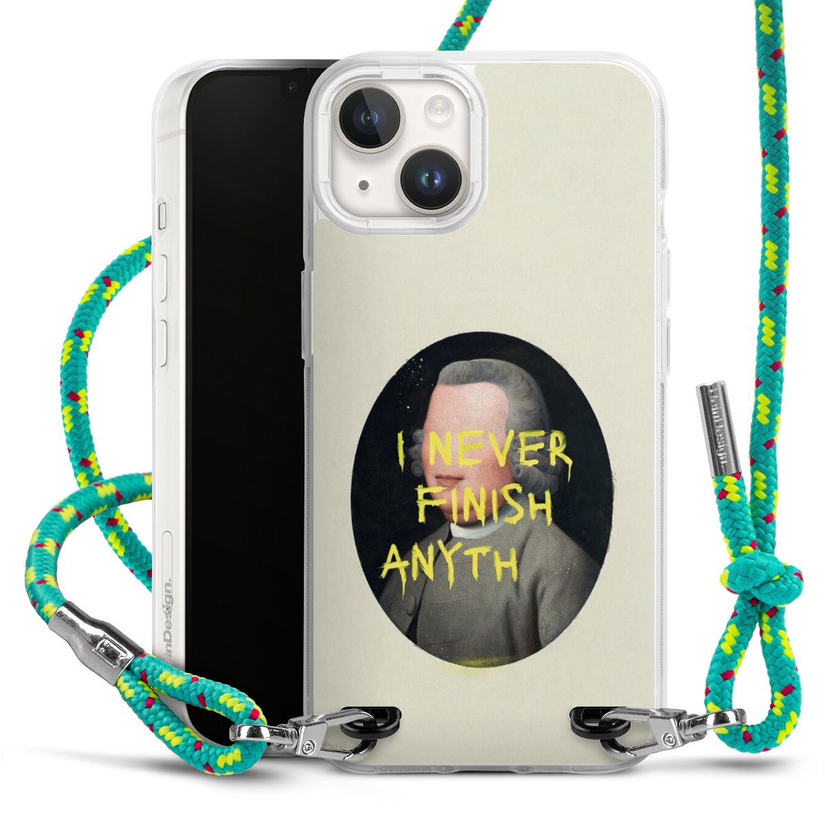 The flexible case is made from a highquality TPU material (thermoplastic Polyurethan). Thanks to its longlasting and break resistant characterisitcs, the case is flexible yet consistent in form and has a great grip and feel. The textile strap made from Polyester gives a chic yet casual accent allowing you to carry your phone like a bag or necklace - a practical gadget perfect for your next adventure. The textile strap is about 1.70 meters long and the length can easily be adjusted through the knots. Our Carry Case is available in Colourful, Mint-Camouflage, Very-Berry, Sahara-Sand and Sparkling-Neon. The ends of the textile strap are covered with metallic end caps to protect them against fraying.
