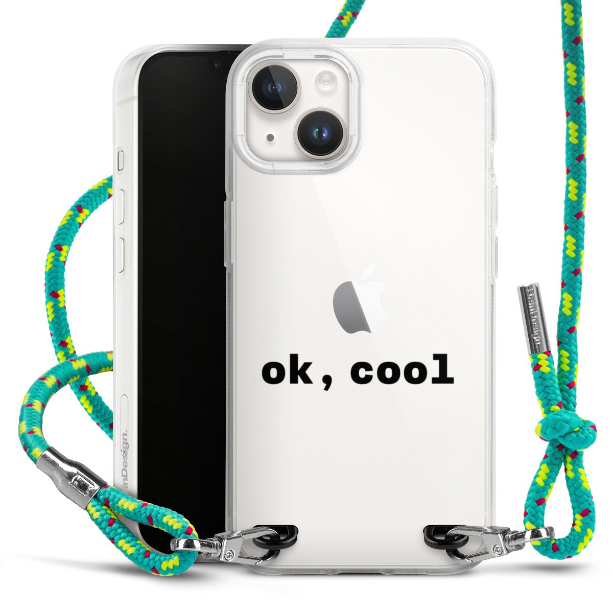 The flexible case is made from a highquality TPU material (thermoplastic Polyurethan). Thanks to its longlasting and break resistant characterisitcs, the case is flexible yet consistent in form and has a great grip and feel. The textile strap made from Polyester gives a chic yet casual accent allowing you to carry your phone like a bag or necklace - a practical gadget perfect for your next adventure. The textile strap is about 1.70 meters long and the length can easily be adjusted through the knots. Our Carry Case is available in Colourful, Mint-Camouflage, Very-Berry, Sahara-Sand and Sparkling-Neon. The ends of the textile strap are covered with metallic end caps to protect them against fraying.