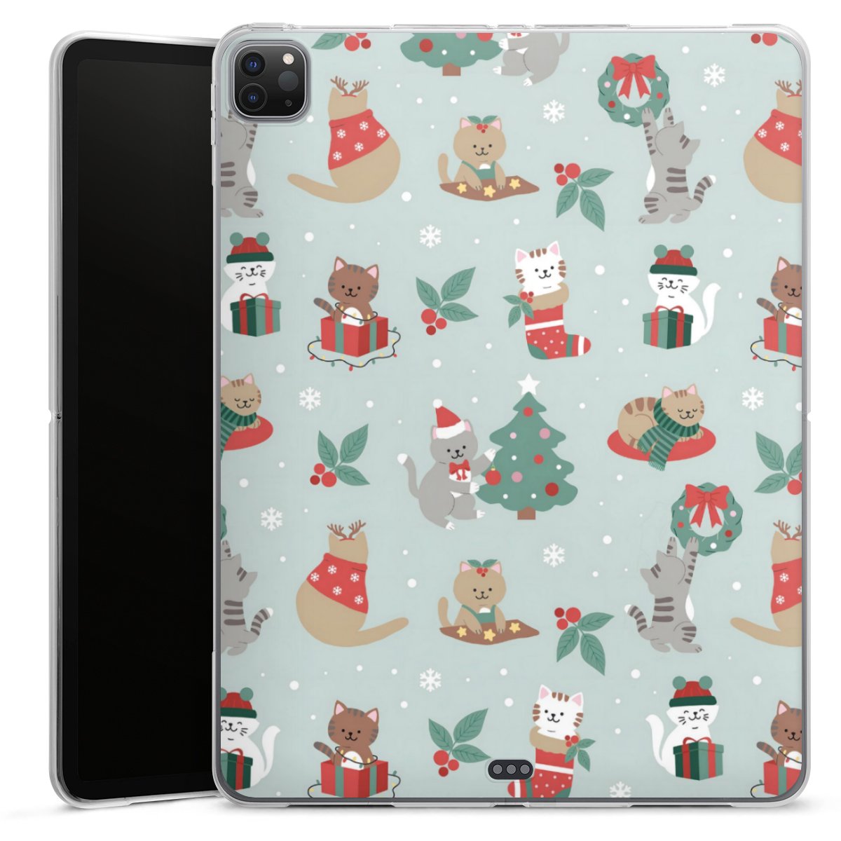 Cute Winter Wonderland Christmas Festive Cats on Teal
