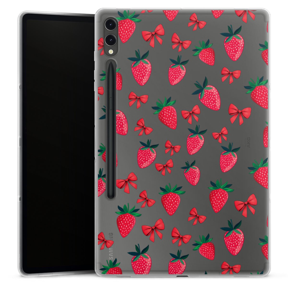 Strawberry Heart Ribbon Pattern Transparent